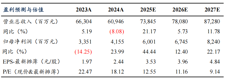事迹处于预报中值,相宜预期。公司25H1营收372亿元,同+23.8%,归母净利润27.1亿元,同+62.3%,毛利率15.9%,同-0.7pct;其中25Q2营收194亿元,同环比+28.3%/8.5%,归母净利润14.6亿元,同环比+27%/16.5%。此前预报25H1归母净利26-28亿元,事迹相宜预期。